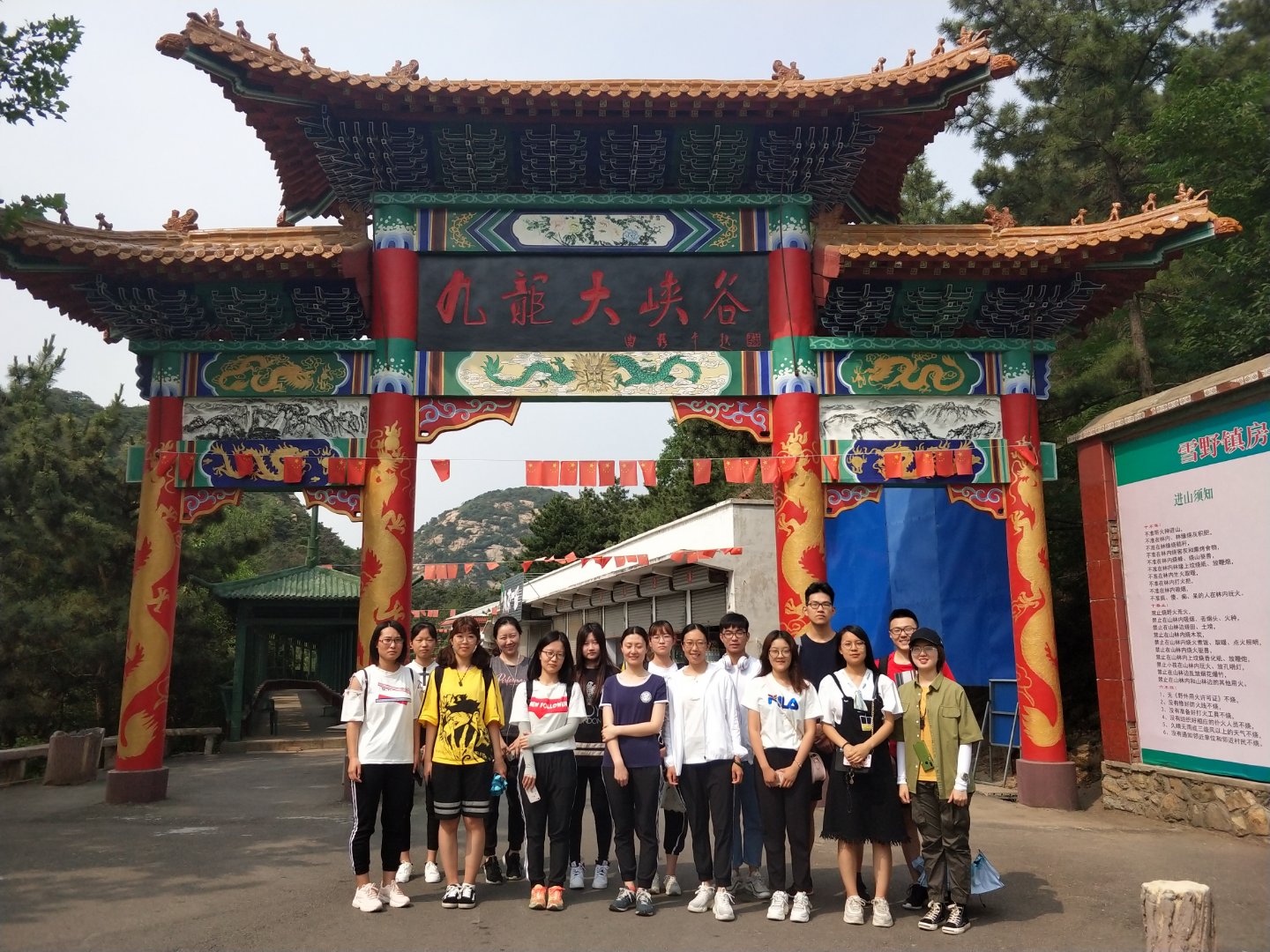 在前期准备工作中,同学们分成了三个小组,分别查阅并整理了当地的自然环境,人文环境和景区开发等方面的资料。调研当天,老师和同学们从学校出发,九点到达齐鲁第一大峡谷“九龙大峡谷”,大峡谷全程20公里,沿途谷中古树参天,两边奇峰突兀,山、泉、谭、瀑、洞分布于峡谷,至今保持原始风貌。擎天崖、望海峰、一线天、黑龙潭、九女湖、白龙潭、龙女床等是其主要景点。中午在鹿鸣山庄老师同学一起就餐,一起讨论学习,交流。下午调研队伍前往了“梦幻情人谷”,感受古今中外的爱情故事。在调研过程中,针对景区中各主要景点进行开发现状分析,由同学分组对沿途景点进行记录,在游览过程中师生也对景区管理人员及部分散客进行深度访谈,将理论与实践结合,对景区的优劣势进行全面分析。师生共同针对景区的开发现状及管理中显现的一些问题进行探讨,并为景区的进一步设计、营销及管理提供有建设性的建议。