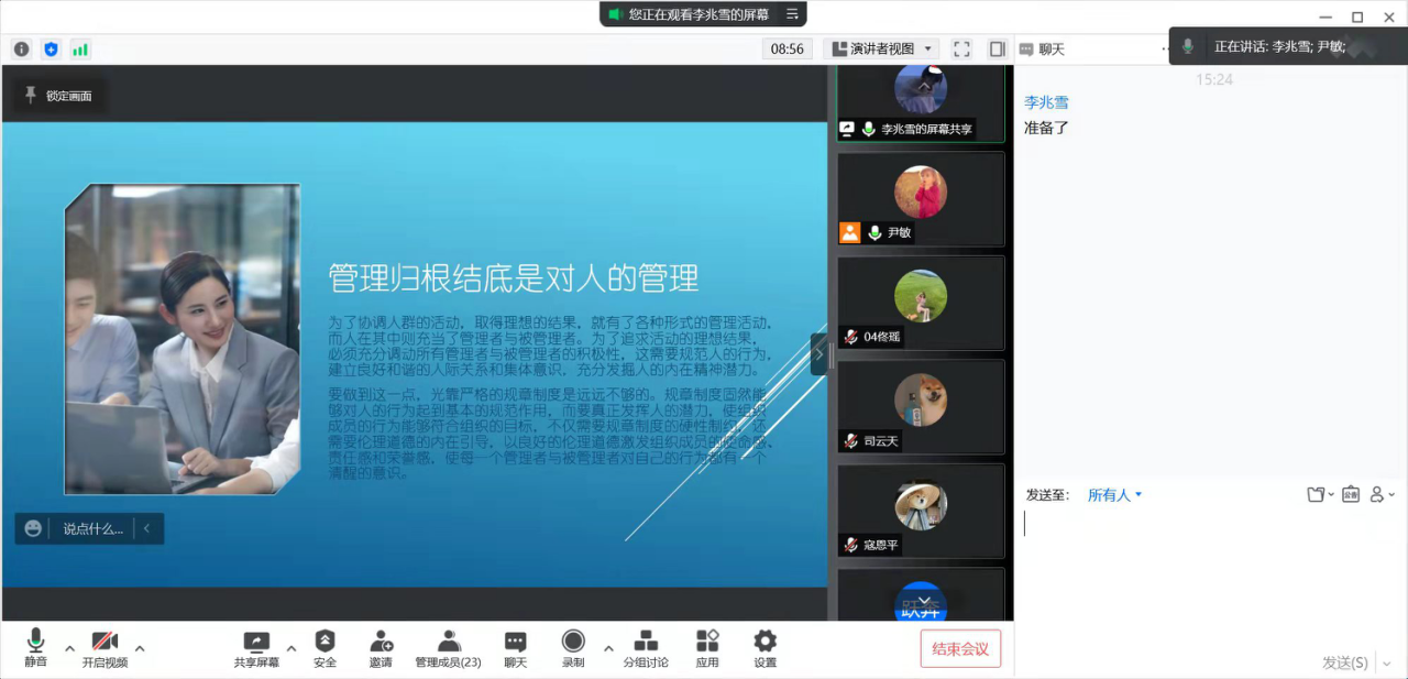 上网课之前要事先准备足够的材料,而且还要适应网课教学的特点,多点名多互动多提问,多做作业,而这都需要提前做好足够的准备。上网课必须选择合适的平台。老师们用“雨课堂”或“腾讯会议”居多,从每周老师们汇报上来的总结情况来看,同学们普遍反这两个系统功能强大、上课效果很好,可以随时即时互动,点名、提问、讨论都没有问题,还可以随时要求学生打开视频、获知其上课的情况,我学院很多课程都用+微信群的方式,即上课直播、随机点名、课堂讨论用腾讯会议和雨课堂,通知、课程资料、布置和提交作业用微信群。学生到时率几乎是百分百。